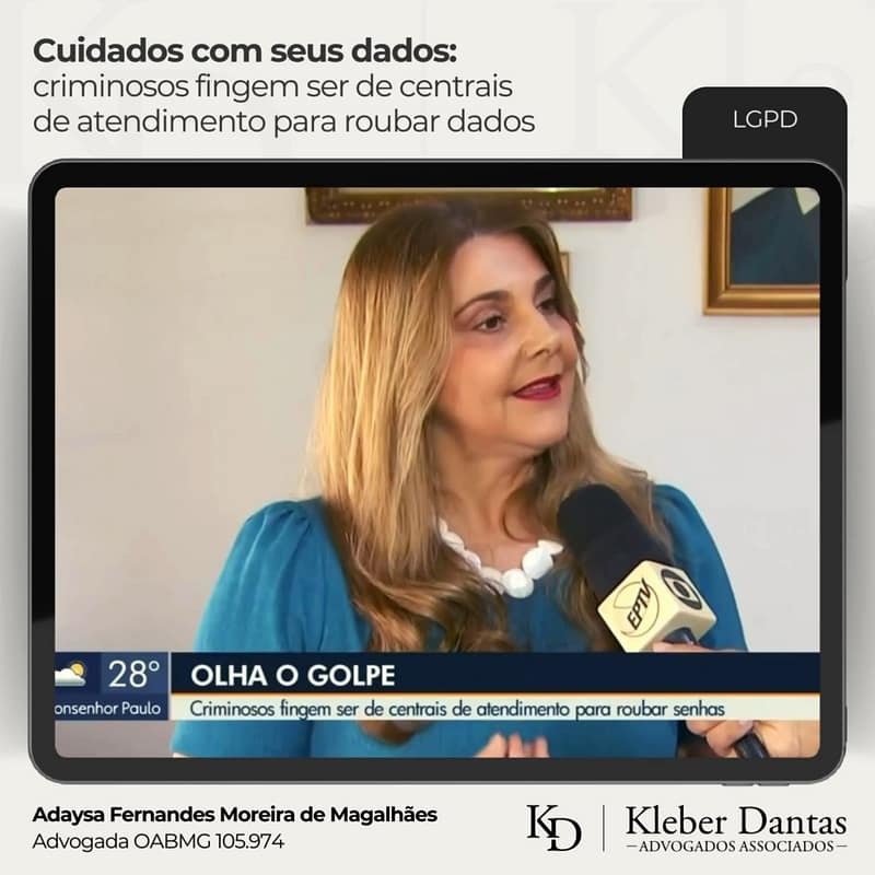 A EPTV Sul de Minas, afiliada da Rede Globo, entrevistou a advogada do escritório, Adaysa Fernandes Moreira de Magalhães, que é especialista em LGPD.
