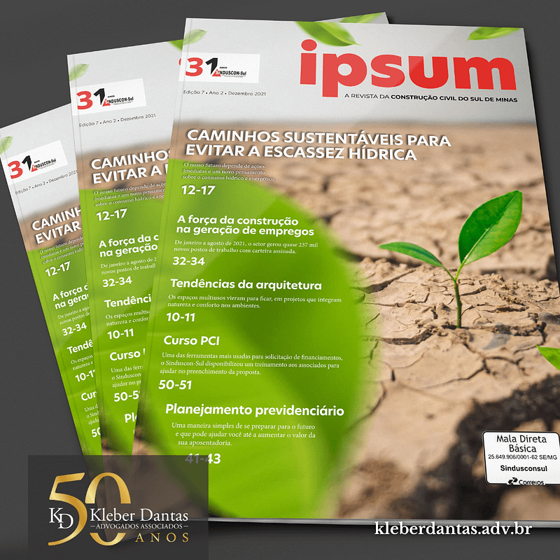 Nosso escritório foi convidado pelo Sindicato da Construção Civil do Sul de Minas (Sinduscon-Sul) para participar da 7ª edição da Revista IPSUM.
